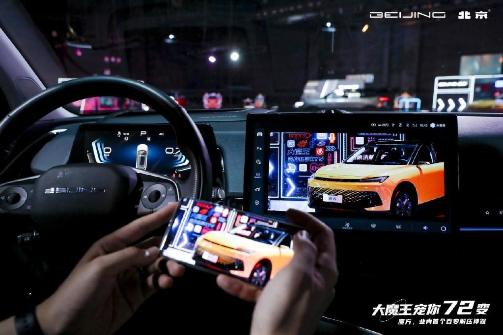 作为目前唯一搭载HarmonyOS智能座舱系统的燃油车,北京汽车魔方携魔力智慧超神黑科技玩转多元社交场。在华为HarmonyOS智能BUFF加持下,使得车机拥有强大的投屏功能,不仅可将手机画面投放到魔方车机屏幕上,还可以在车机上对应用进行触控操作,无延迟,不卡顿,超顺滑。这样一来,几乎手机上的所有应用,都可以在车机上完成。结友出行想找点乐子?没问题,利用HarmonyOS车机组团开黑吧!组团郊游露营缺少趣味?没问题,利用HarmonyOS车机来一场K歌大赛吧!陌生局想缓解无聊和尴尬?没问题,利用HarmonyOS车机来看一场电影吧!毫不夸张的说,无论你身边的场景如何变化,北京汽车魔方72变总有一变能够化解,让社恐也能体验到社牛的欢乐!
